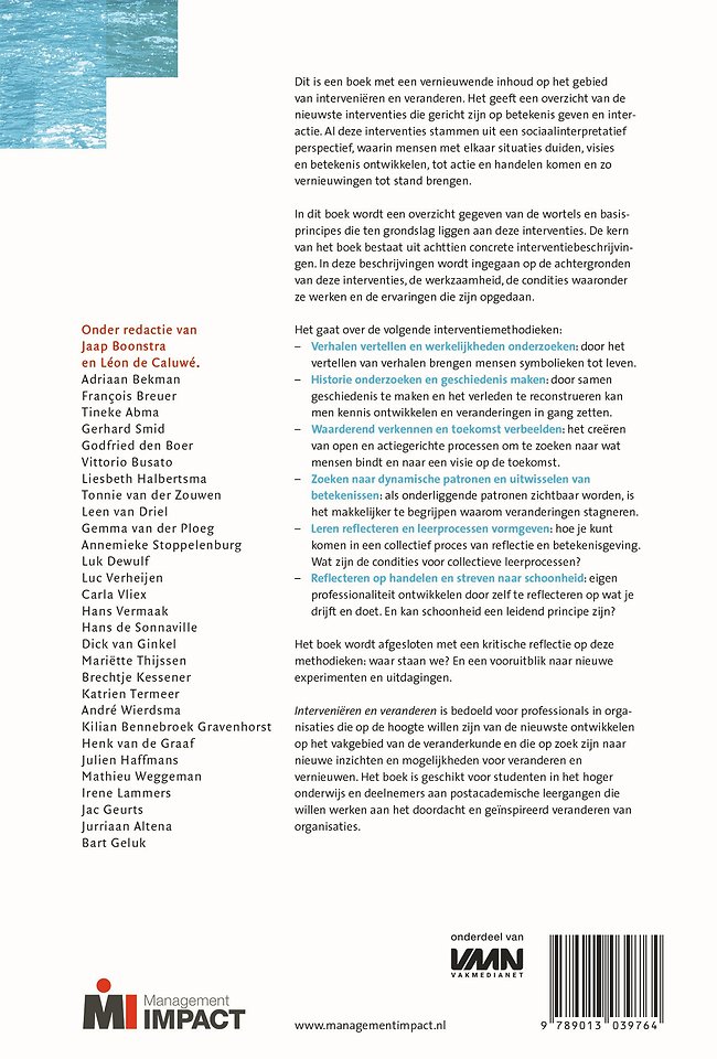 organisatieverandering verandermanagement veranderen interventies betekenisgeving sociaal constructionisme organisatiekunde interactie appreciative inquiry narratieve benadering groepsdynamica systeemdynamica leerprocessen future search large group interventions open space zelforganisatie learning history complexiteitstheorie chaostheorie methodiek collectieve competentieverhoging paradigma's survey feedback actieonderzoek leiderschap organisatieleren storytelling causale diagrammen dialoog collectieve actie
