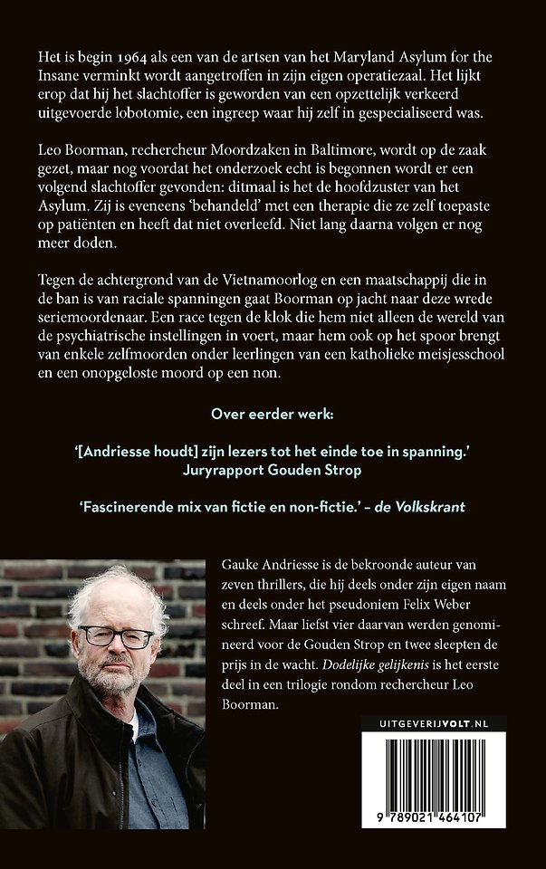 Dodelijke gelijkenis is deel een van de nieuwe Leo Boorman-trilogie van tweevoudig Gouden Strop-winnaar Gauke Andriesse, ook bekend als Felix Weber.