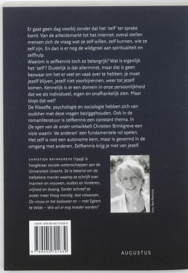 In 'De ogen van de ander' ontwikkelt Christien Brinkgreve een visie waarin de anderen een fundamentele rol spelen. Het zelf is niet een autonome kern, maar is gevormd in de omgang met anderen.