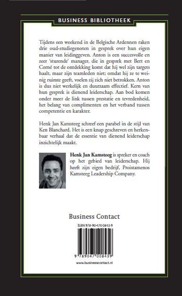 Anton is dus niet werkelijk en duurzaam effectief. Hoe kan het dan wel? Kern van hun gesprek is dienend leiderschap. Aan bod komen onder meer de link tussen prestatie en tevredenheid, het belang van complimenten en het verband tussen competentie en karakter.