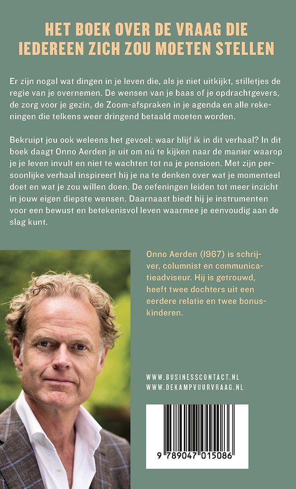 Bekruipt jou ook weleens het gevoel: waar blijf ik in dit verhaal? Om zo’n gedachte vervolgens van je af te schudden en je weer onder te dompelen in de dagelijkse hectiek? In dit boek daagt Onno Aerden je uit om nú te kijken naar de manier waarop je je leven invult en niet te wachten tot na je pensioen. Hij inspireert je om na te denken over wat je momenteel doet en wat je zou wíllen doen. Maar het blijft niet bij inspiratie alleen.