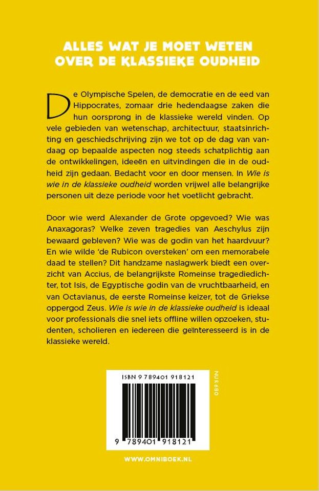 ‘Wie is wie in de klassieke oudheid’ maakt deel uit van de serie Wie is wie. Deze serie bestaat uit handzame naslagwerken met daarin een handig ABC, bedoeld voor professionals die snel iets op willen zoeken, studenten, scholieren en geïnteresseerde leken.