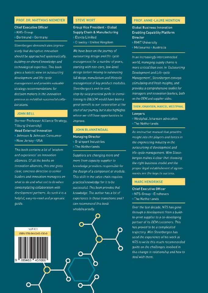 This book is a practical guide for OEMs and suppliers to manage their relationship in this specific type of alliance, from its first development project right through to its full implementation. It introduces the subjects and terminology relevant for this type of cooperation in a way that all involved disciplines will (need to) understand it, including product management, development, operations, service, sales, purchasing, and legal. Then it presents a step-by-step plan to implement and manage the cooperation, with many practical tools and real-life examples. This book's in-depth, multidisciplinary approach makes it an ideal general management tool for innovation managers, especially those in the high-tech industry, who are considering outsourcing part of their development.
