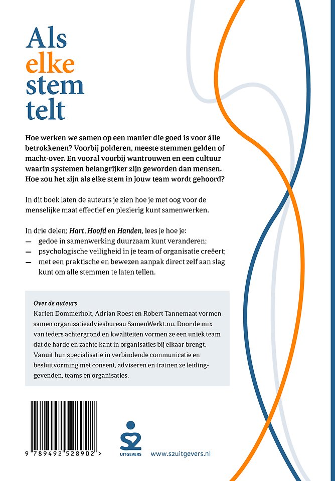 Meer over de auteursHoe werken we samen op een manier die goed is voor álle betrokkenen? Voorbij polderen, meeste stemmen gelden of macht-over. En vooral voorbij wantrouwen en een cultuur waarin systemen belangrijker zijn geworden dan mensen. Hoe zou het zijn als elke stem in jouw team wordt gehoord?