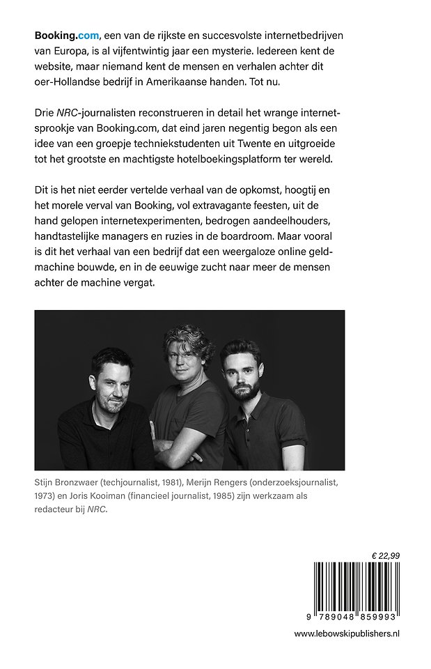 Meer over de auteursBooking.com, een van de grootste, rijkste en meest succesvolle internetbedrijven van Europa, is al 25 jaar een mysterie. Niemand kent de verhalen van de mensen achter deze oer-Hollandse techreus in Amerikaanse handen.
